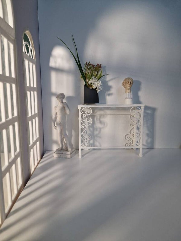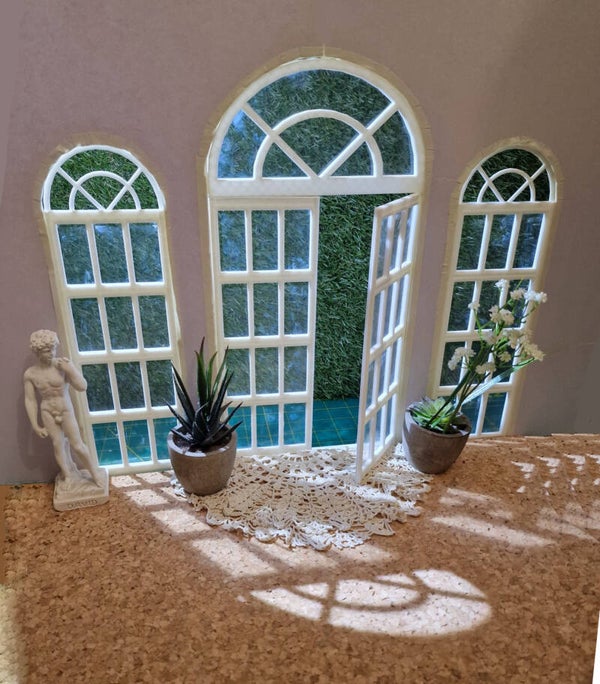 Add a touch of timeless elegance to your doll diorama with our exquisite French Country Arched Window. This miniature masterpiece is perfect for creating a realistic and captivating scene in your dollhouse or roombox.